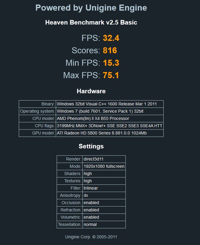 MY GPU GOT 32.4 FPS average on normal tessellation which is not bad at all
